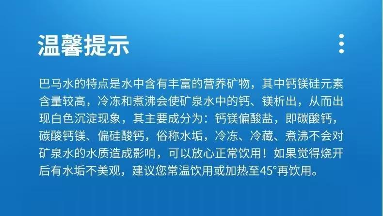 巴马丽琅来自广西长寿之乡巴马,是全球饮用水论坛永久举办地,国家地理标志性保护水源地,水龄大于9950年,含多种矿物质,真正的活性水,天然弱碱性矿泉水,中和酸性体质,为健康做加法,天然小分子团水,渗透更强。入口顺滑,回味甘甜。