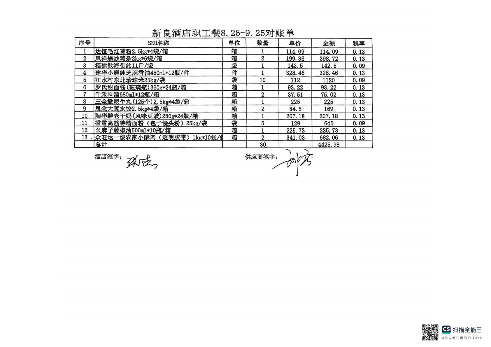 花园宾馆2025年7月对账单 合计金额:26194. 36元