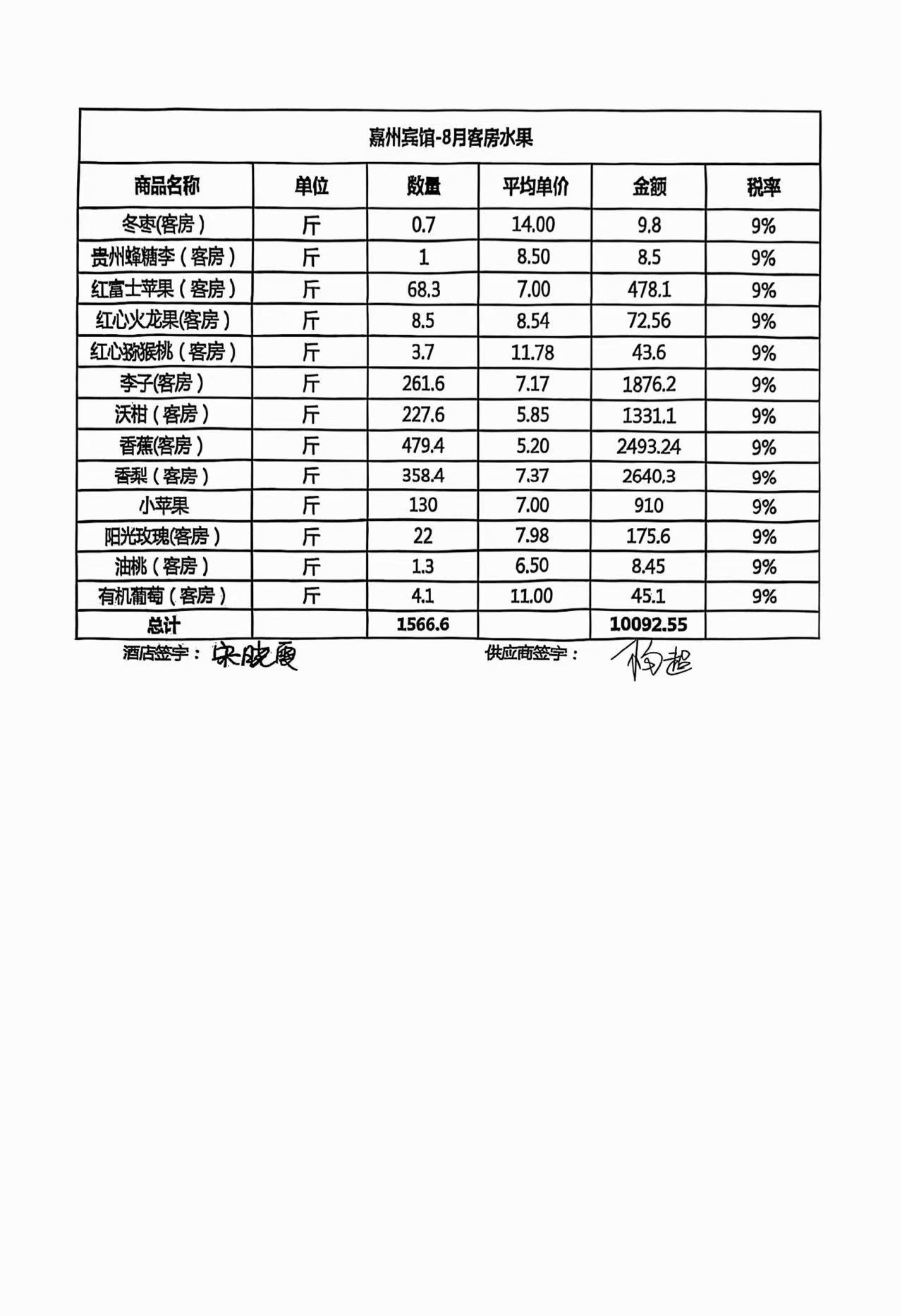 花园宾馆2025年7月对账单 合计金额:26194. 36元