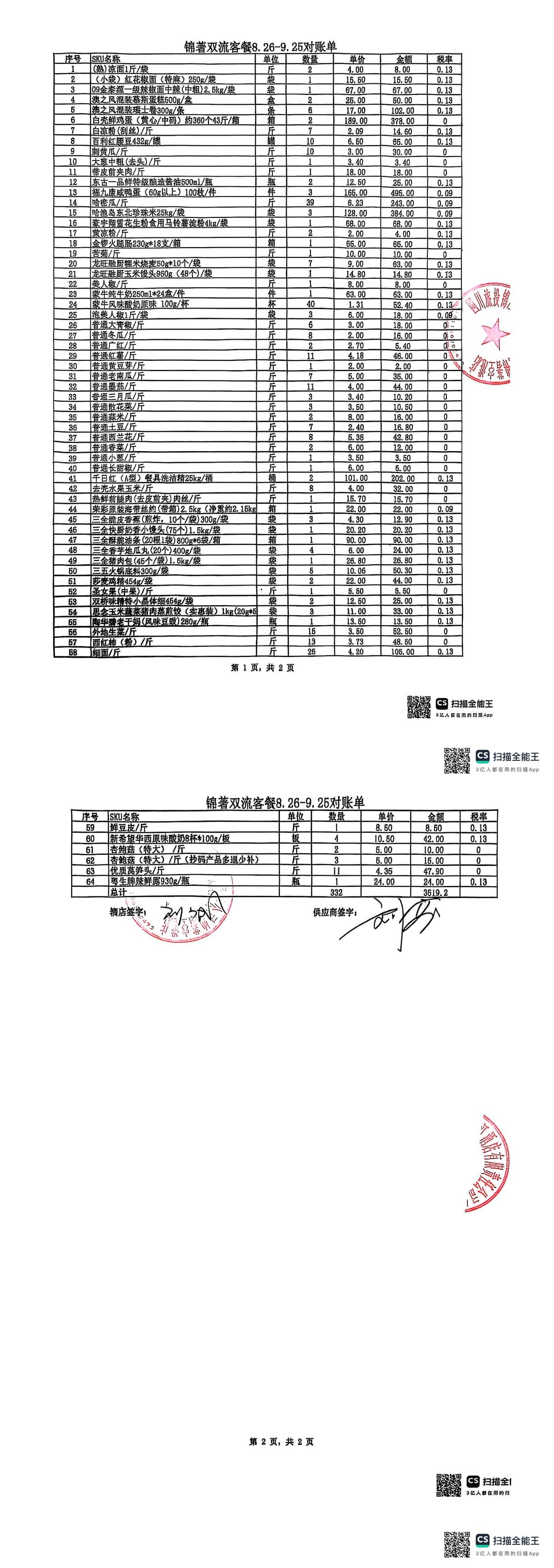 新良酒店客餐9.26-10.25对账单 合计金额:10132.04