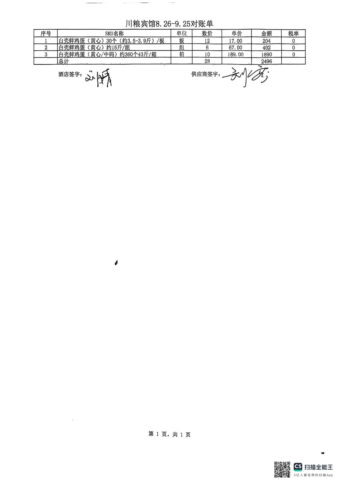 新良酒店客餐9.26-10.25对账单 合计金额:10132.04