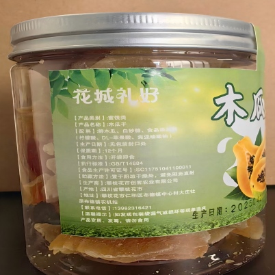 [配料]:鲜木瓜、白砂糖、食品添加(柠檬酸、DL-苹果酸、焦亚硫酸钠)
