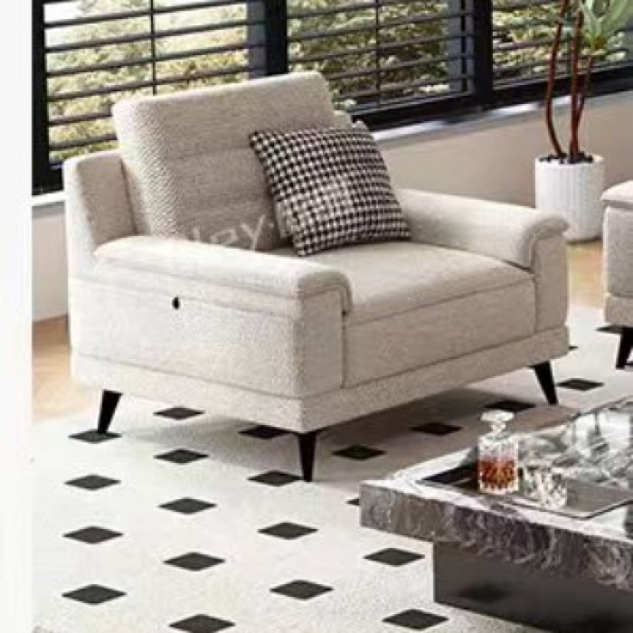 1、面料:可选优质戎布艺饰面。 2、内置抛光、烘干、除虫处理实木框架及高密度高弹力海绵。 3、承重弹力结构:靠背装订进口多条橡筋,坐垫为标准间距蛇形簧+平衡进口橡筋+进口网布,不易变形。4、黑色铁脚。