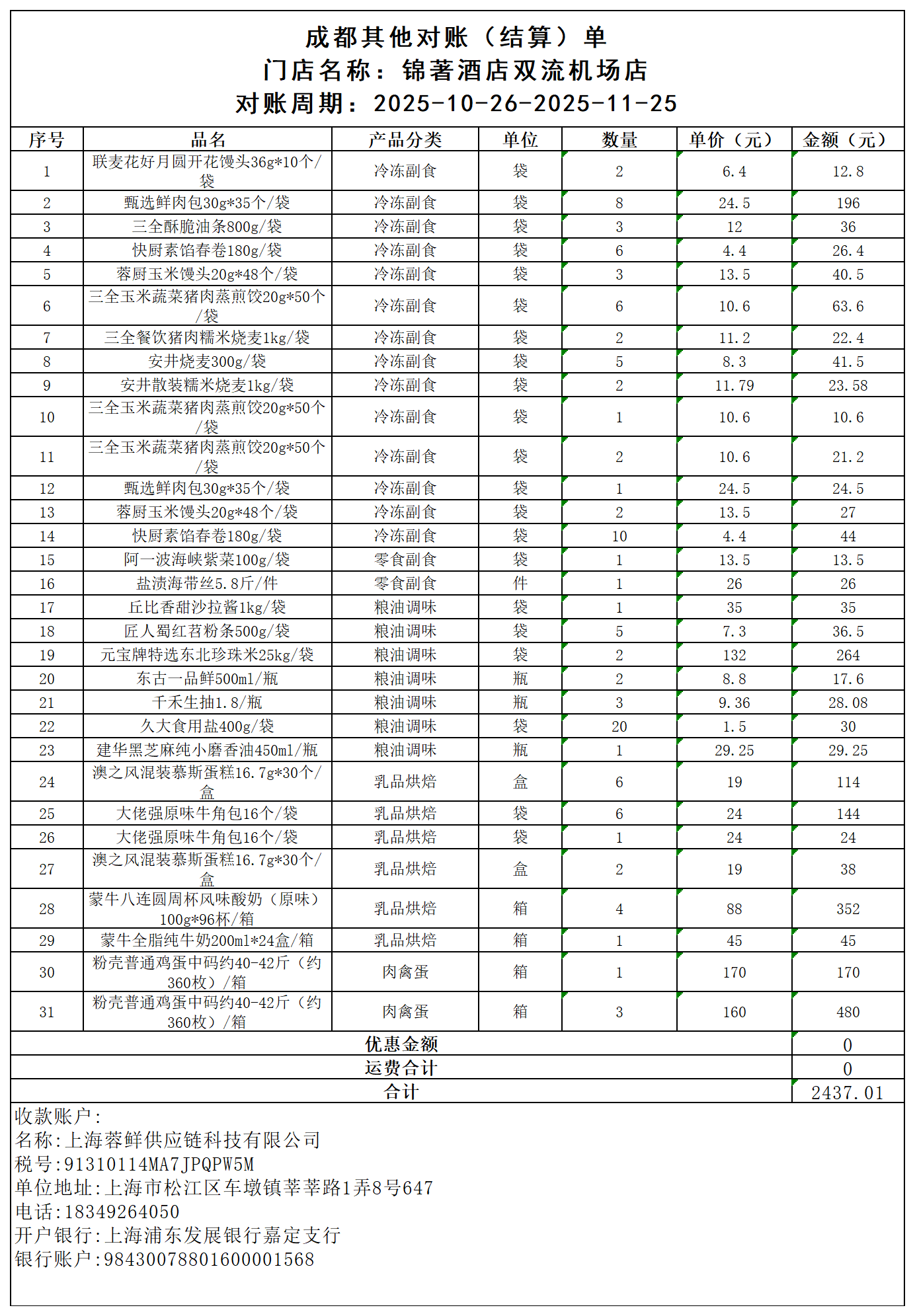 川粮饭店11月对账单1726元