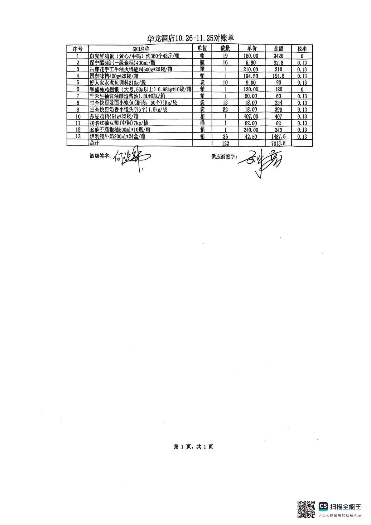 新良酒店客餐9.26-10.25对账单 合计金额:10132.04