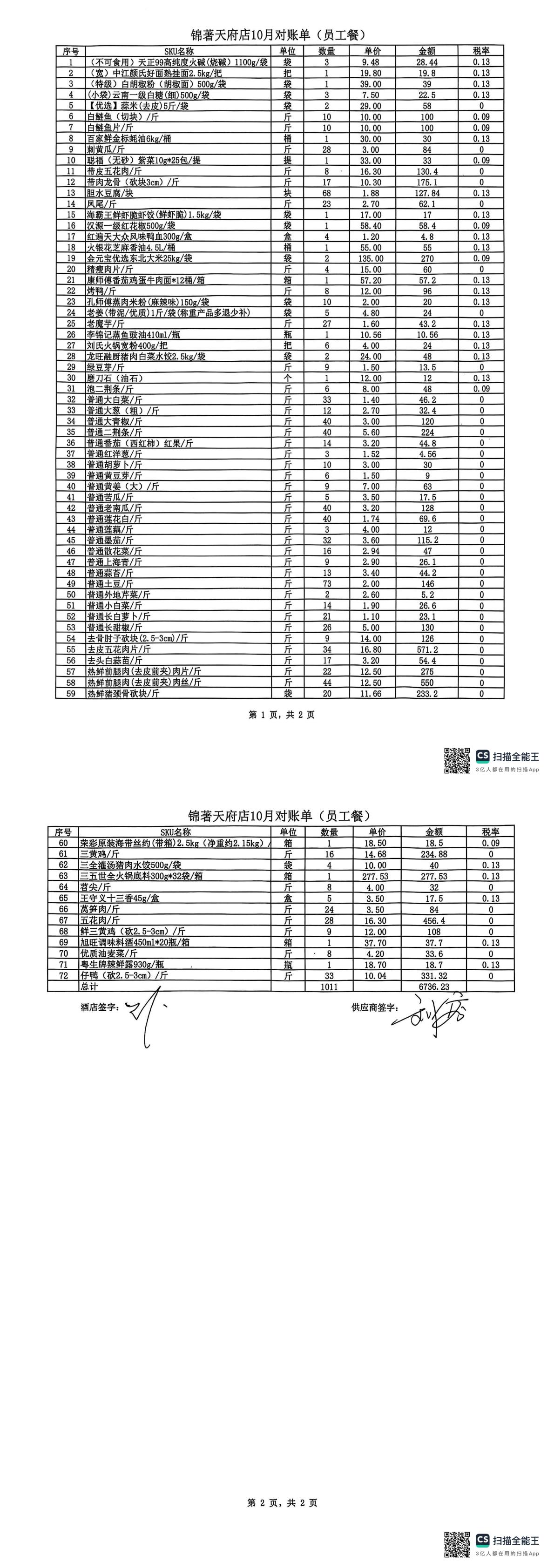 新良酒店客餐9.26-10.25对账单 合计金额:10132.04