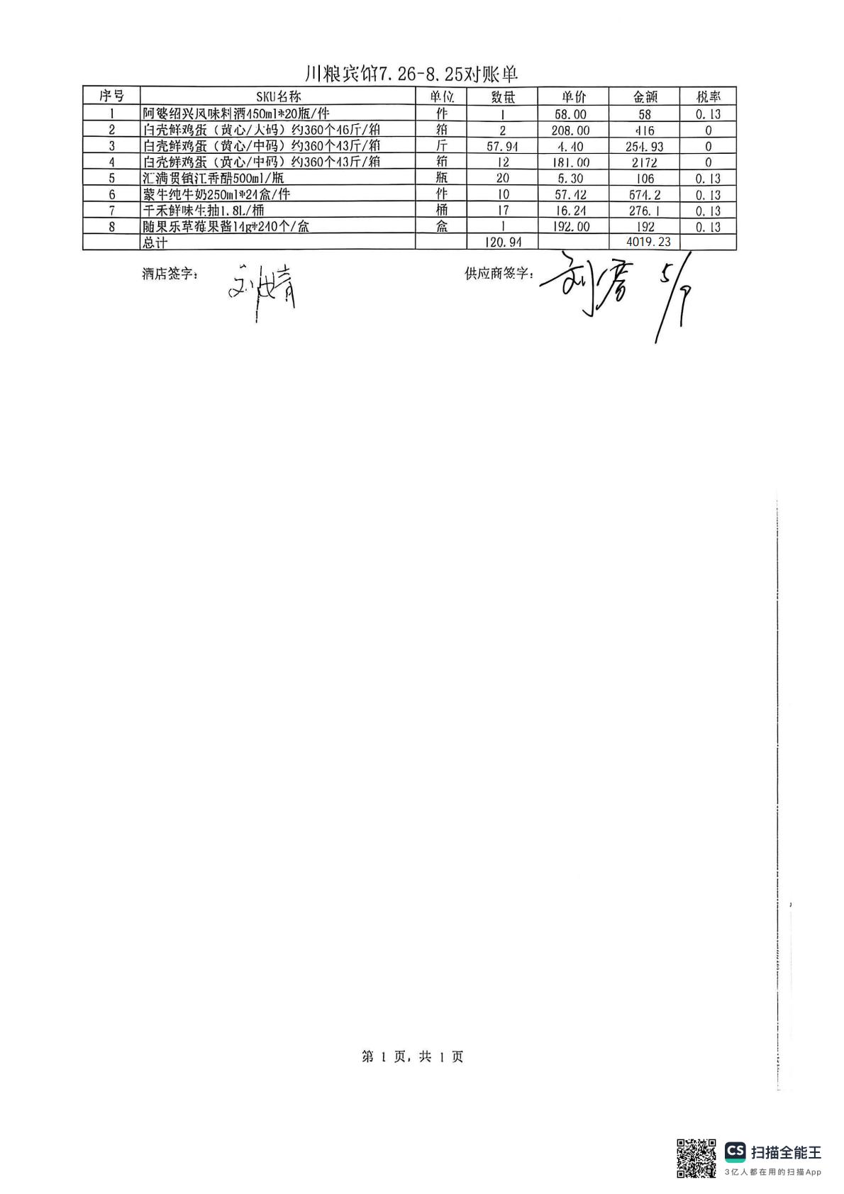 新良酒店客餐9.26-10.25对账单 合计金额:10132.04