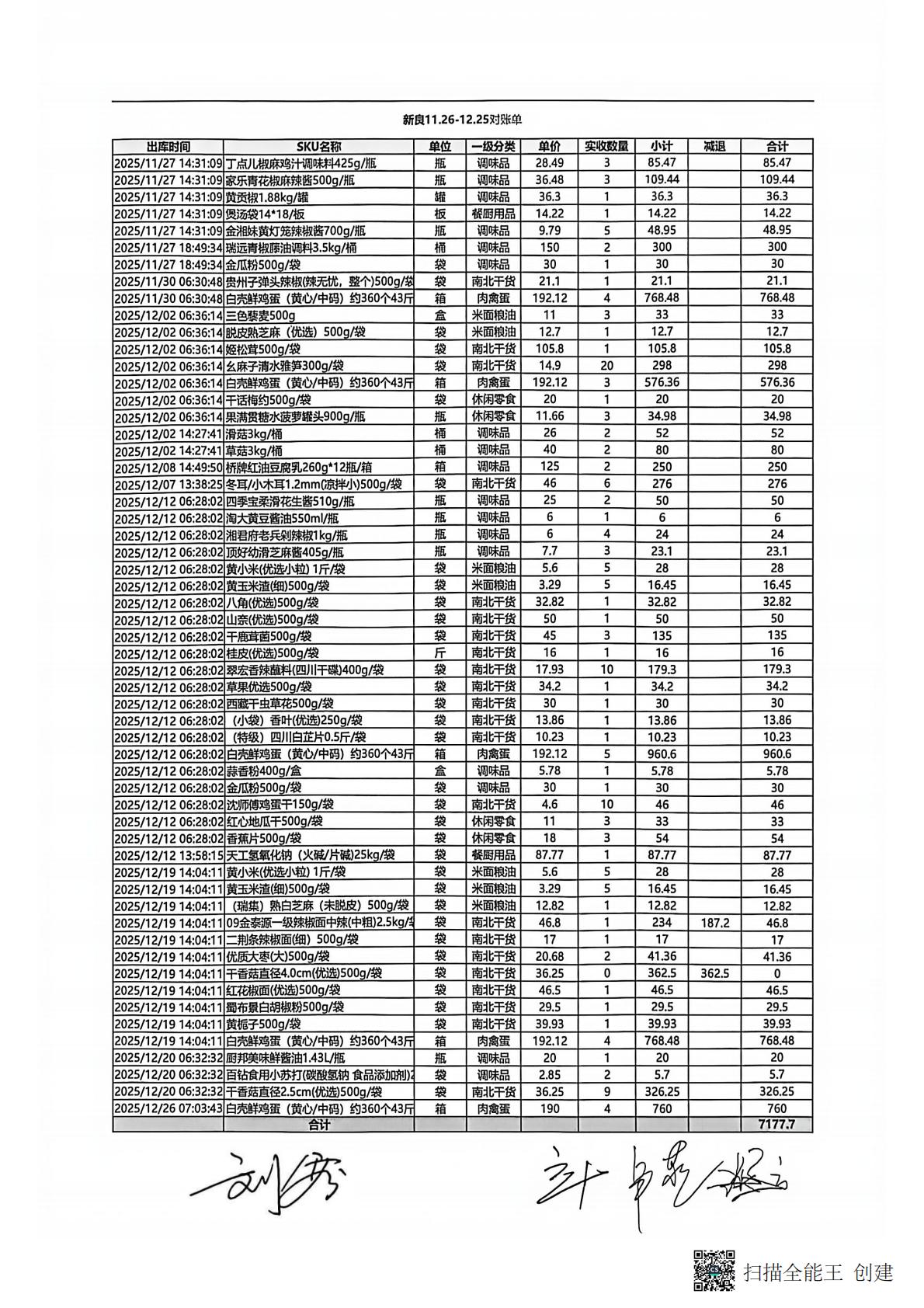锦著天府店11月对账单(员工餐) 合计金额:4701.09