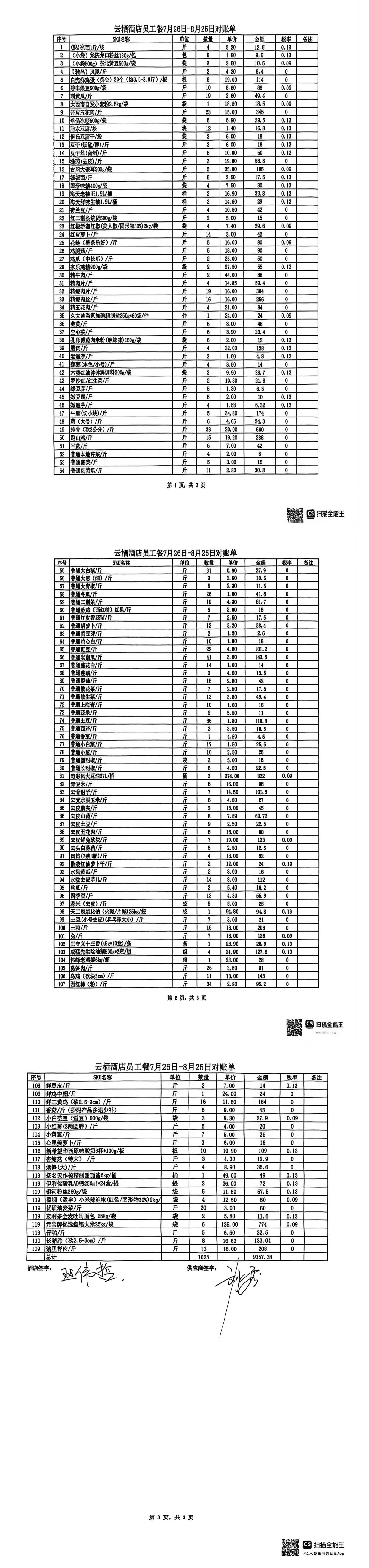 川粮宾馆8.26-9.25对账单 合计金额:2496