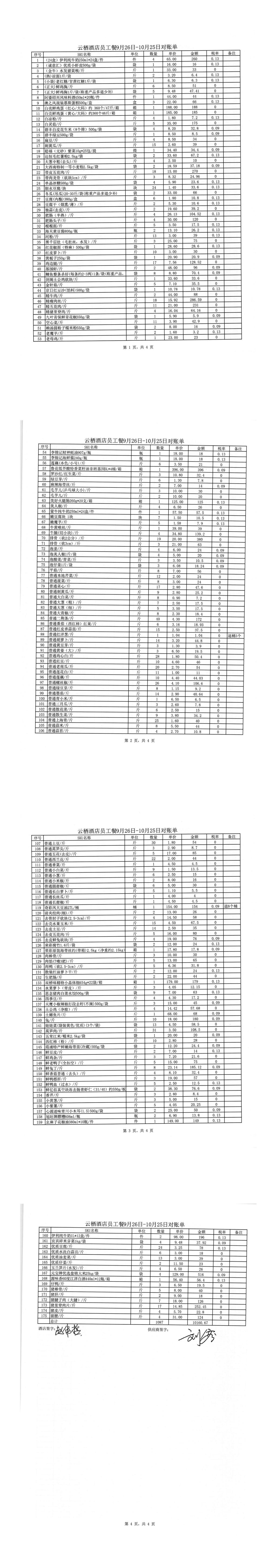锦著天府店11月对账单(员工餐) 合计金额:4701.09