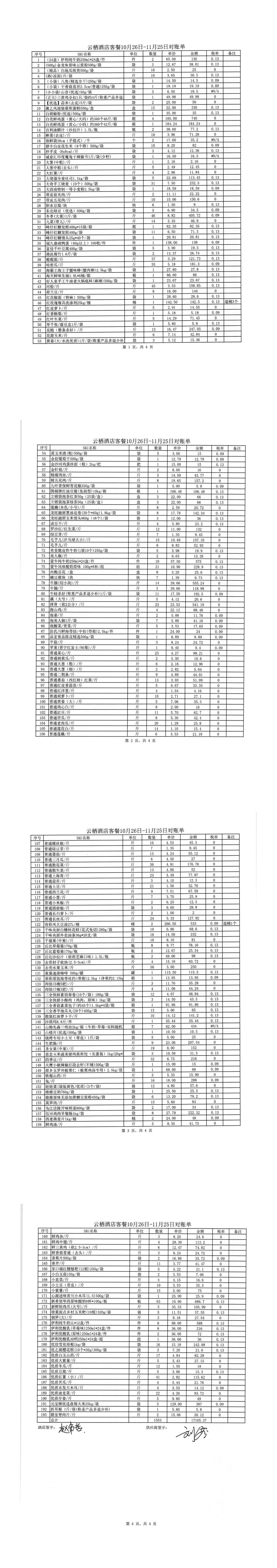 锦著天府店11月对账单(客餐) 合计金额: 35663.11