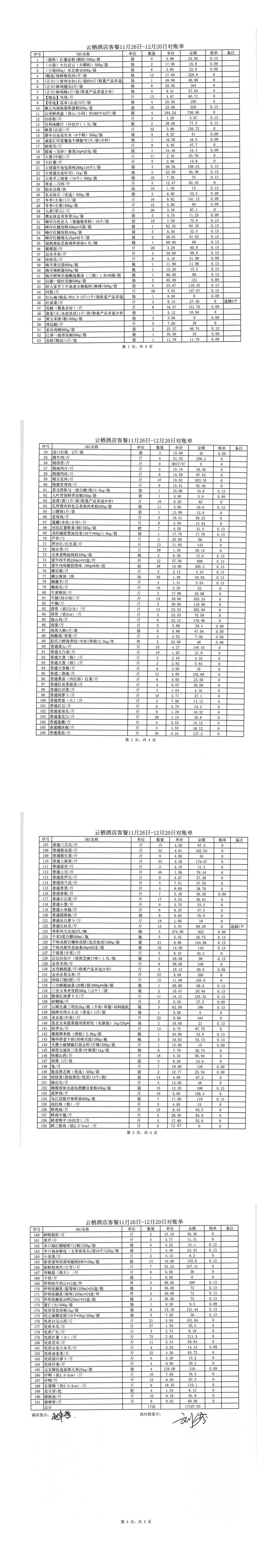 锦著天府店11月对账单(员工餐) 合计金额:4701.09