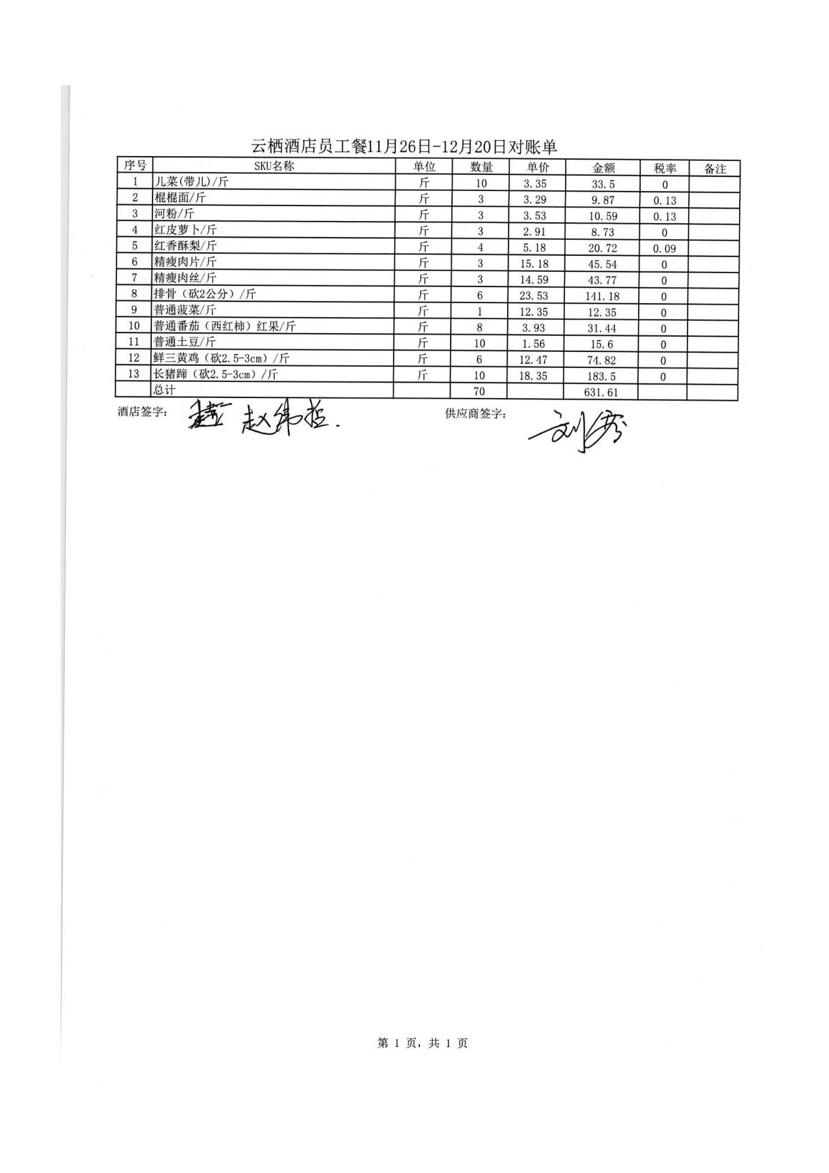 锦著天府店11月对账单(员工餐) 合计金额:4701.09