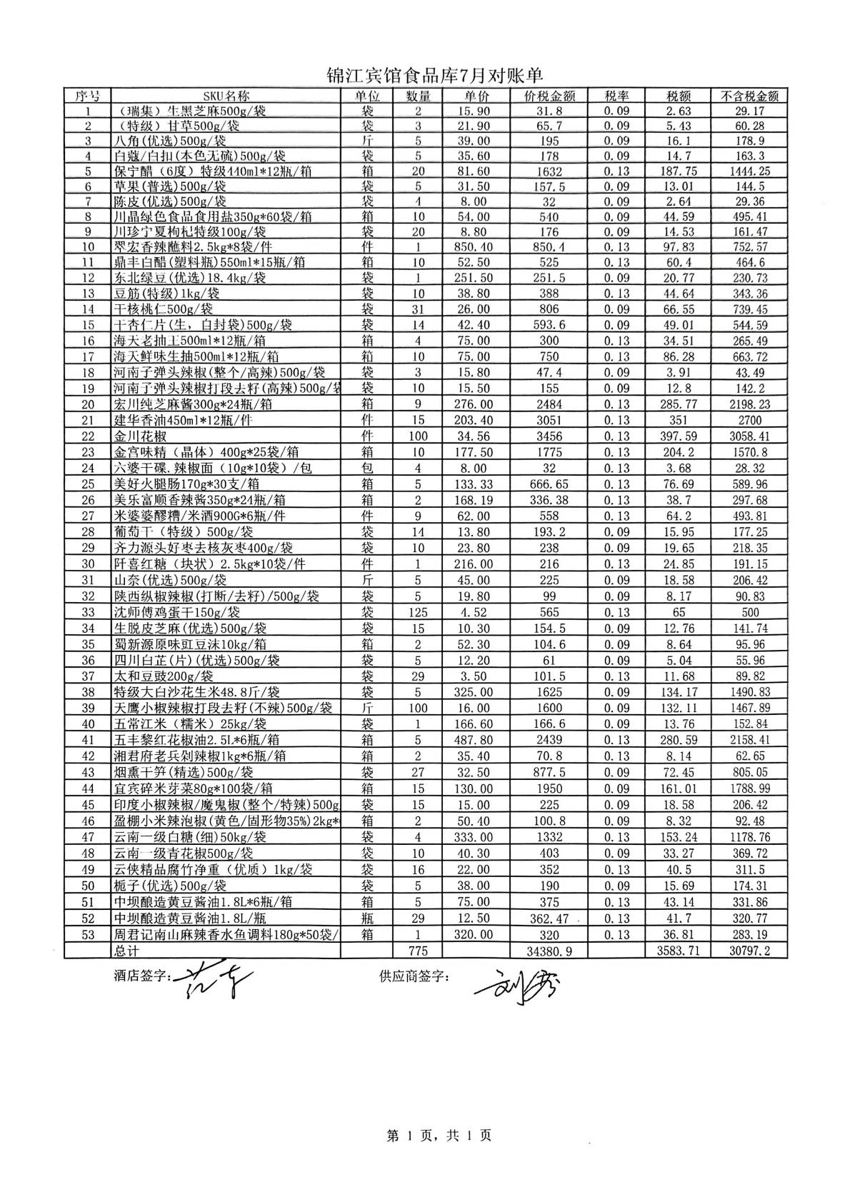 锦著天府店11月对账单(客餐) 合计金额: 35663.11