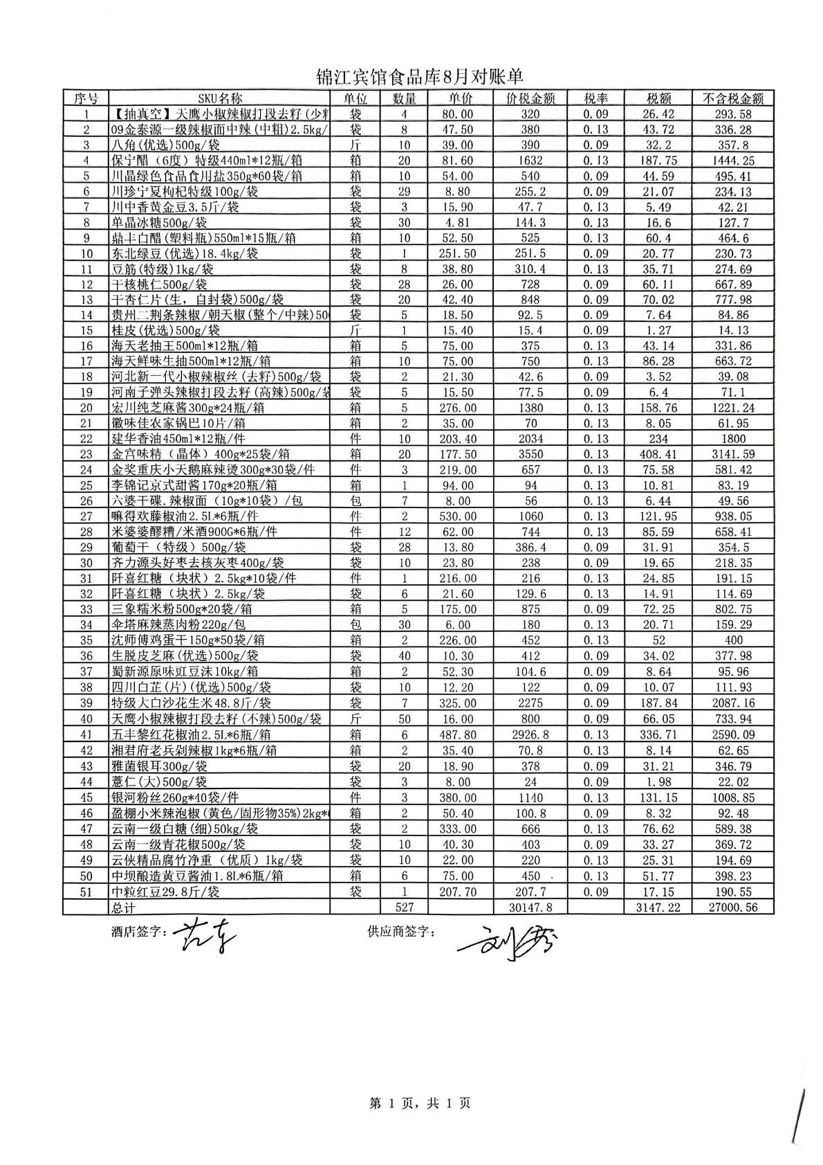 川粮宾馆8.26-9.25对账单 合计金额:2496