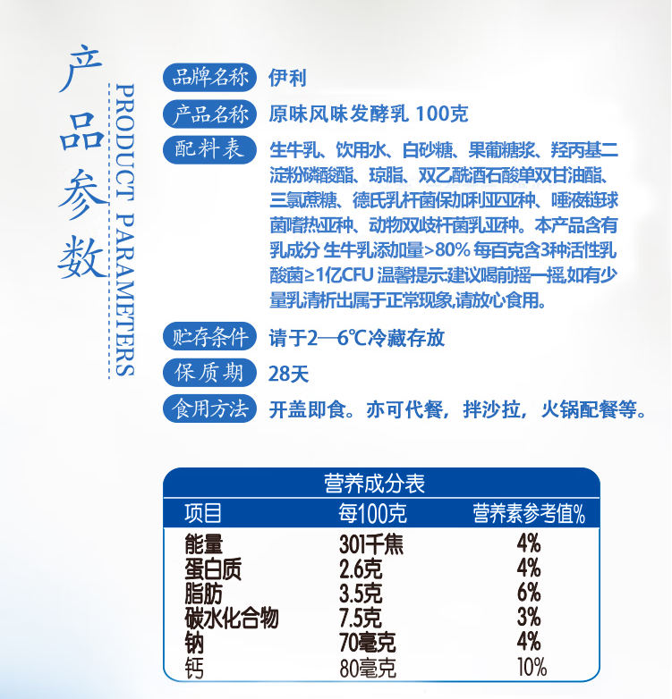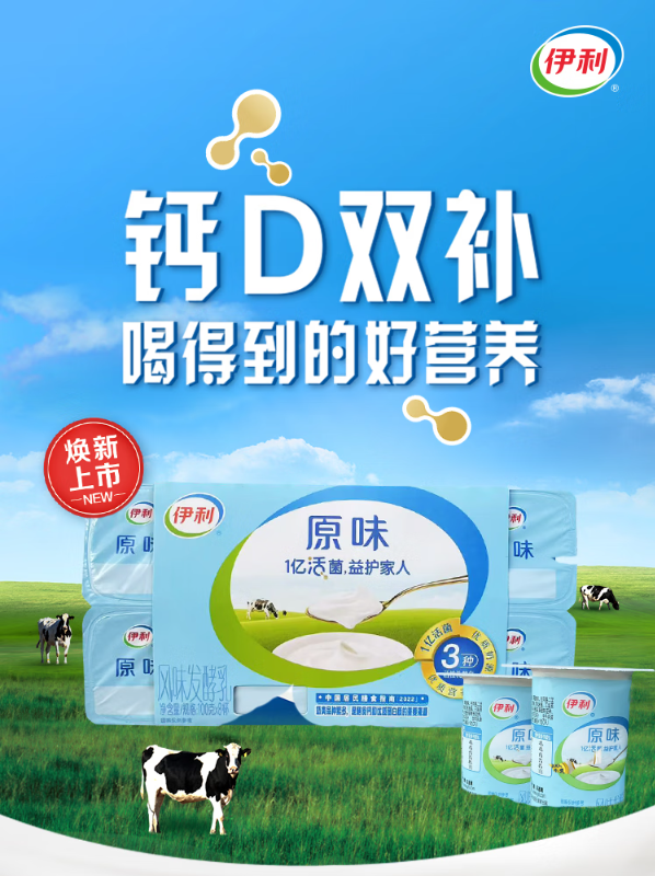 伊利原味低脂高钙风味发酵乳90g小杯装