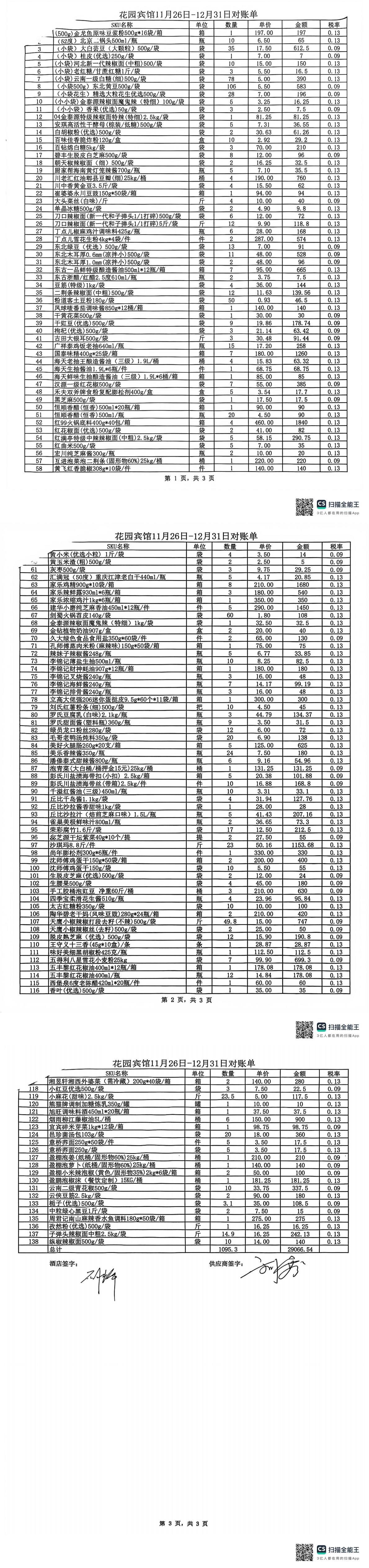 锦著天府店11月对账单(客餐) 合计金额: 35663.11