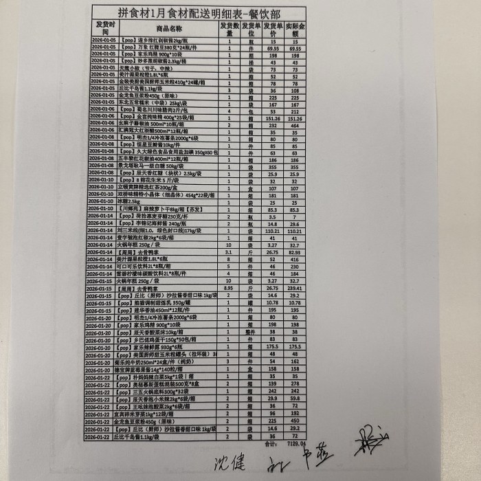 新良酒店餐饮部2025.12.26-2026.1.25食材采购款7129.04