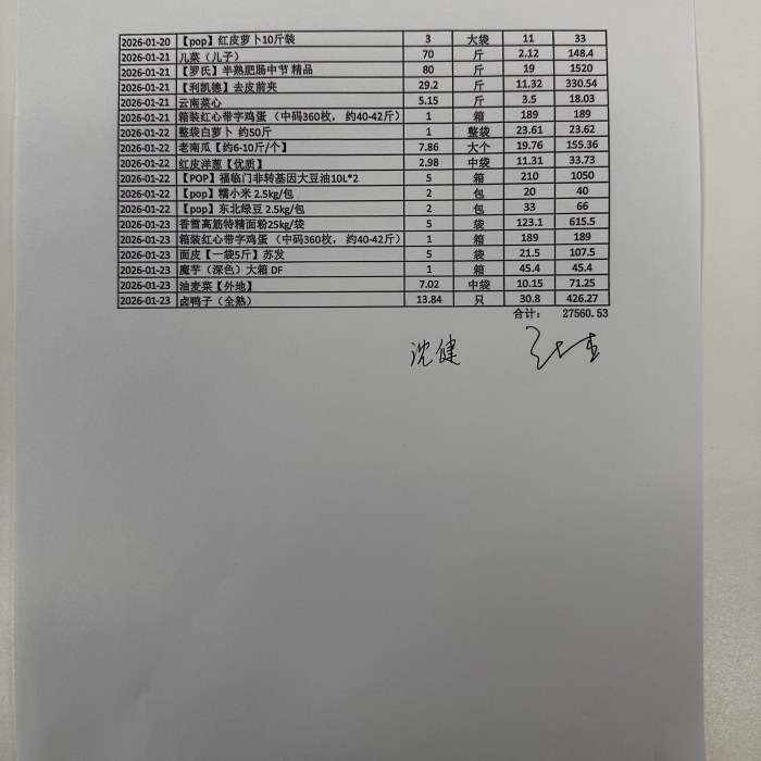 新良酒店员工食堂2025.12.26-2026.1.25后厨食材采购款27