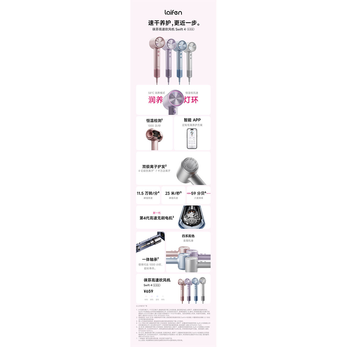 Laifen徕芬高速吹风机Swift4系列家用负离子护发速干大风