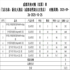 新良大酒店(餐饮部)10月对账单7473元