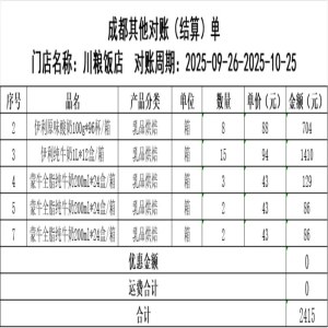 川粮饭店10月对账单2415元