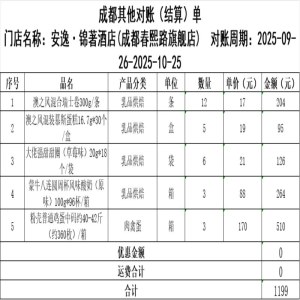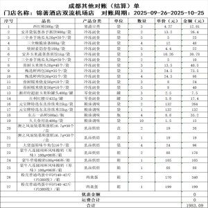 锦著双流客餐8.26-9.25 对账单:3519.2