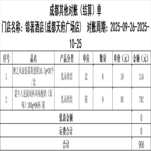 锦著酒店(成都天府广场店) 10月对账单906元