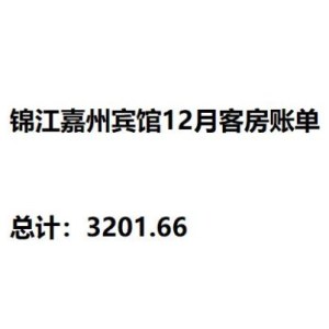 锦江嘉州宾馆12月客房账单总计:3201.66