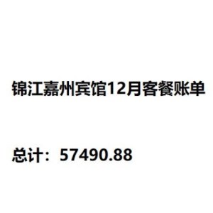 锦江嘉州宾馆12月客餐账单总计:57490.88
