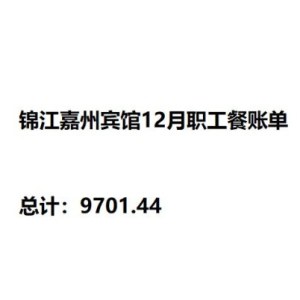 锦江嘉州宾馆12月职工餐厅账单总计:9701.44