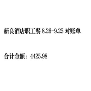 新良酒店职工餐 8.26-9.25 对账单合计金额:4425.98