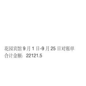花园宾馆9月1日-9月25日对账单 合计金额:22121.5