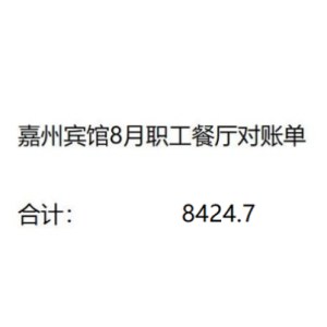 嘉州宾馆8月职工餐厅对账单合计:8424.7