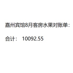 嘉州宾馆8月客房水果对账单合计:10092.55