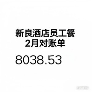新良酒店2月员工餐账单8038.53